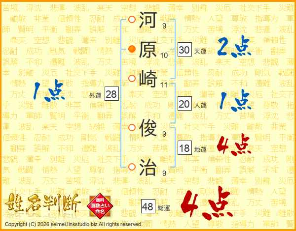 河原崎俊治さんの総運は48画の4点!