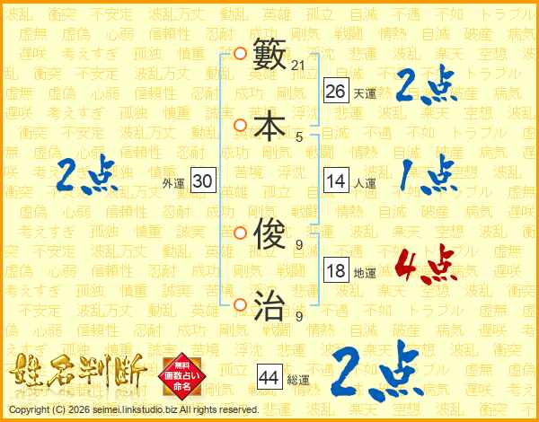籔本俊治さんの天運は26画の2点!