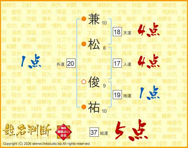 兼松俊祐さんの総運は37画の5点!