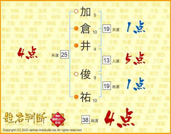 加倉井俊祐さんの総運は38画の4点!
