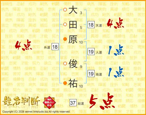 大田原俊祐さんの総運は37画の5点!