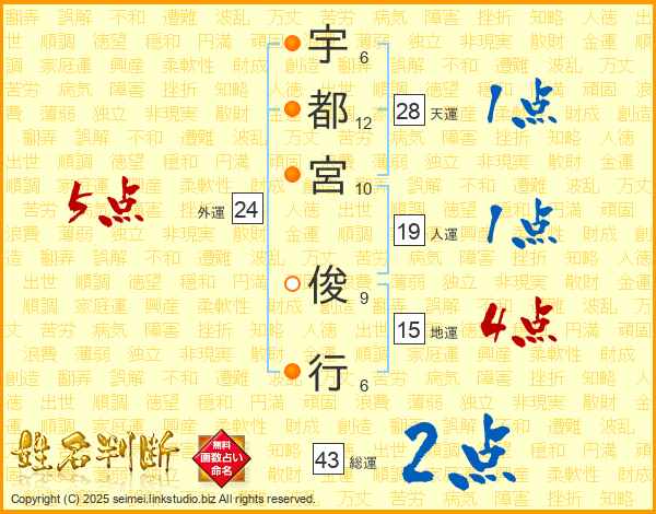 宇都宮俊行さんの人運は19画の1点!