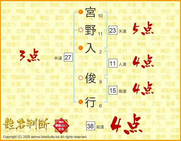宮野入俊行さんの総運は38画の4点!