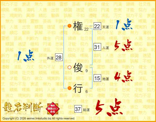 権俊行さんの総運は37画の5点!