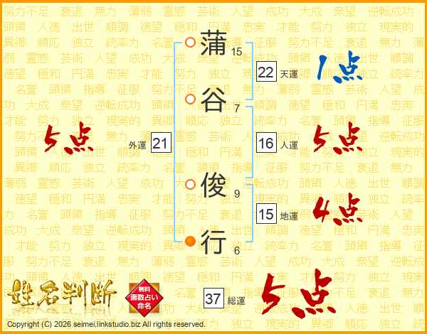 蒲谷俊行さんの総運は37画の5点!