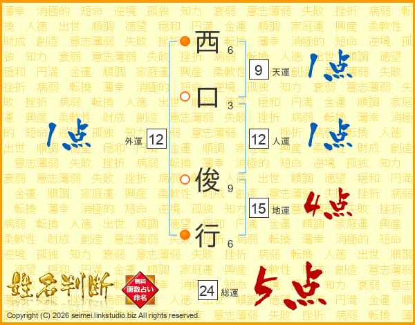 西口俊行さんの総運は24画の5点!