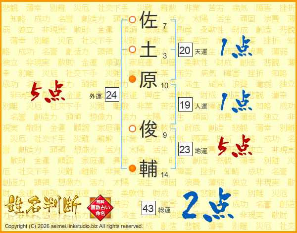 佐(7画)土(3画)原(10画) 俊(9画)輔(14画)