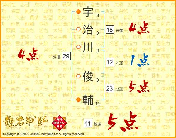 宇治川俊輔さんの総運は41画の5点!