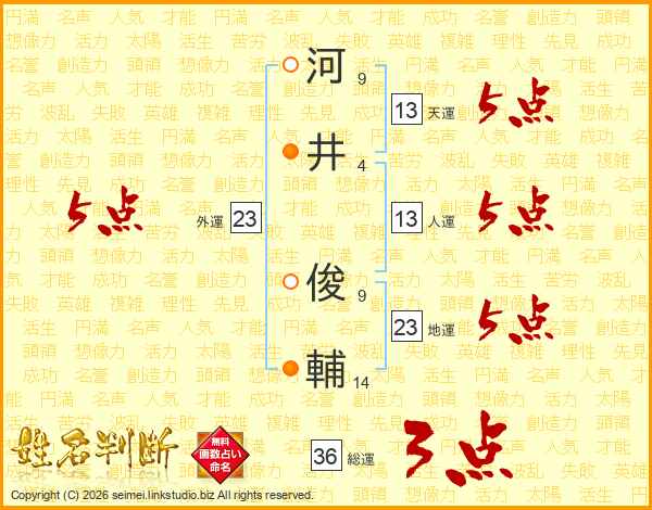 河井俊輔さんの天運は13画の5点!