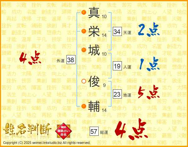 真(10画)栄(14画)城(10画) 俊(9画)輔(14画)