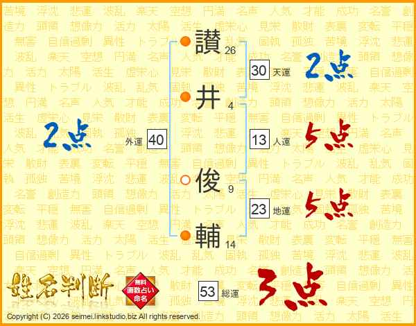 讃(26画)井(4画) 俊(9画)輔(14画)