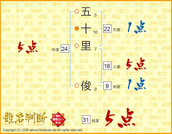 五十里俊さんの総運は31画の5点!