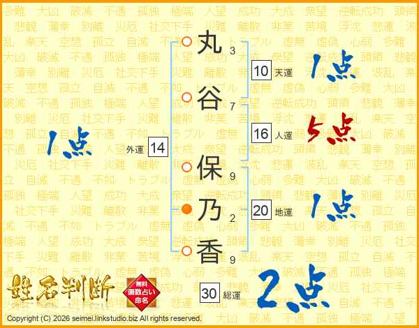 丸谷保乃香さんの総運は30画の2点!