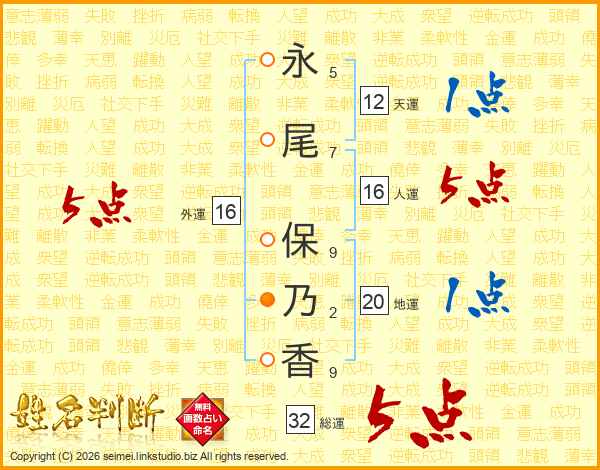 永尾保乃香さんの総運は32画の5点!