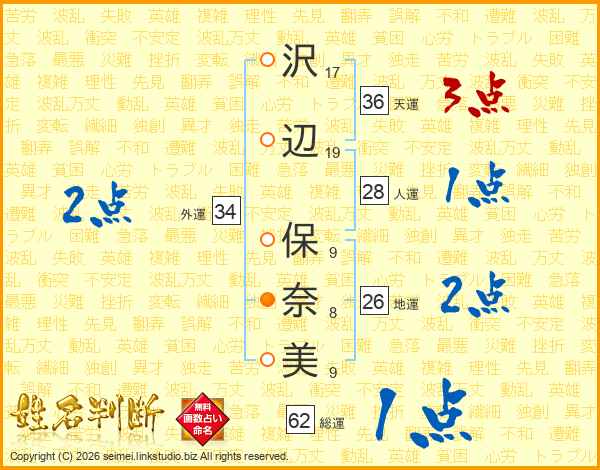 沢辺保奈美さんの地運は26画の2点!