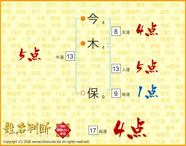 今木保さんの総運は17画の4点!