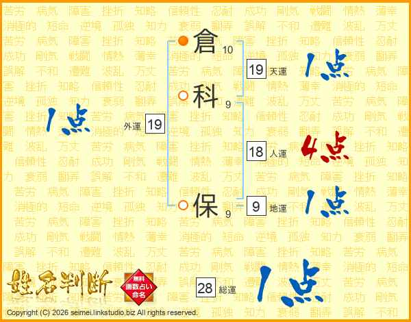 倉科保さんの天運は19画の1点!