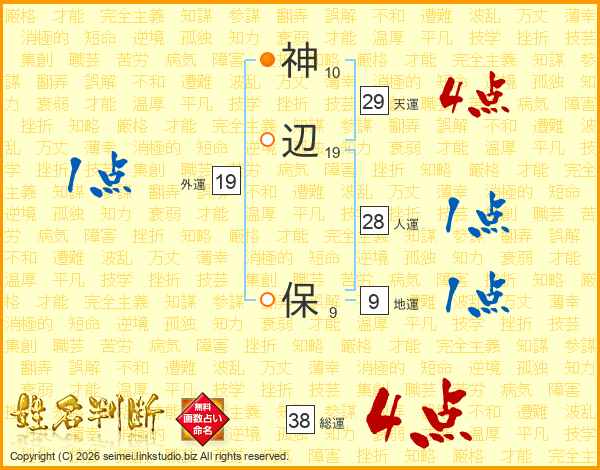 神辺保さんの総運は38画の4点!