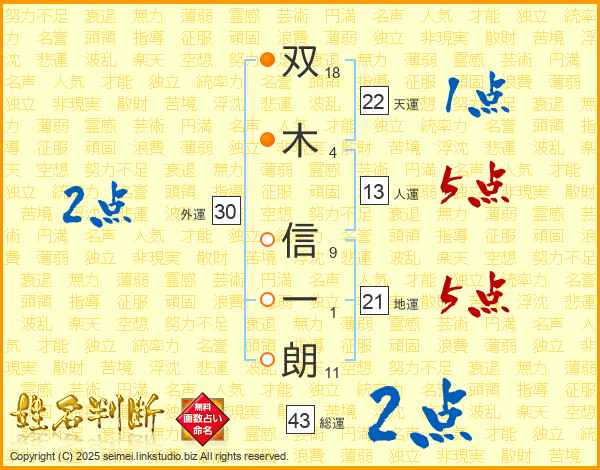 双木信一朗さんの天運は22画の1点!