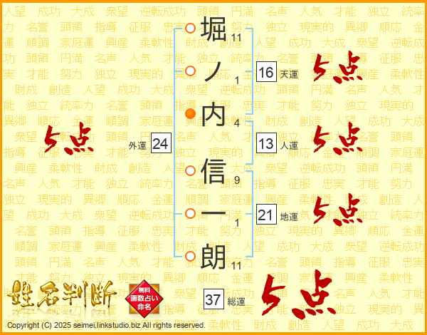 堀ノ内信一朗さんの総運は37画の5点!
