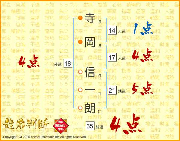 寺岡信一朗さんの天運は14画の1点!