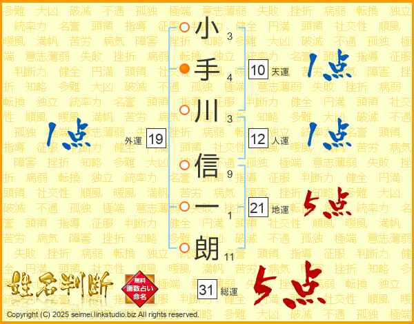 小手川信一朗さんの総運は31画の5点!