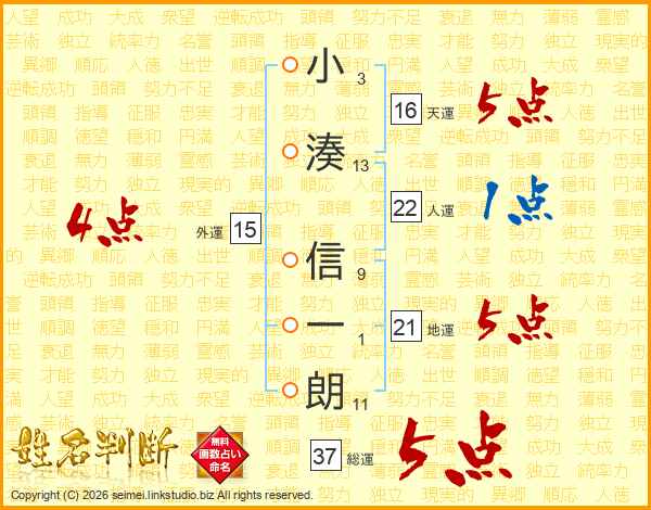 小湊信一朗さんの総運は37画の5点!