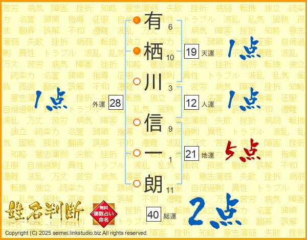 有栖川信一朗さんの総運は40画の2点!