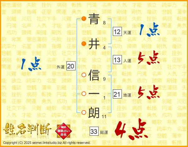 青井信一朗さんの総運は33画の4点!
