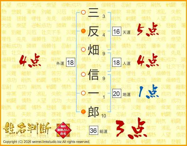 三反畑信一郎さんの総運は36画の3点!
