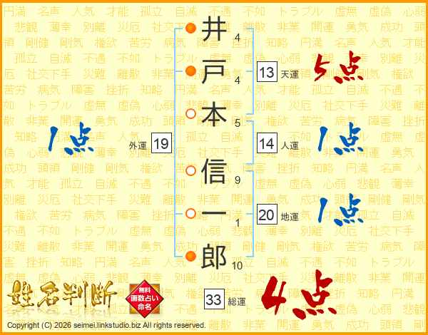 井戸本信一郎さんの天運は13画の5点!