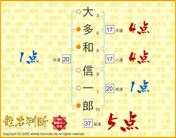 大多和信一郎さんの総運は37画の5点!