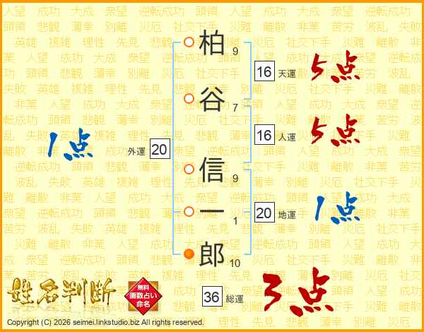 柏谷信一郎さんの総運は36画の3点!