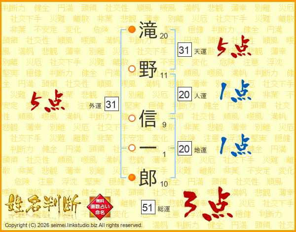 滝野信一郎さんの天運は31画の5点!