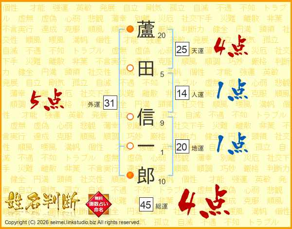 蘆田信一郎さんの総運は45画の4点!