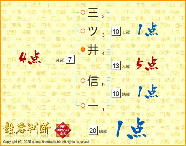 三(3画)ツ(3画)井(4画) 信(9画)一(1画)