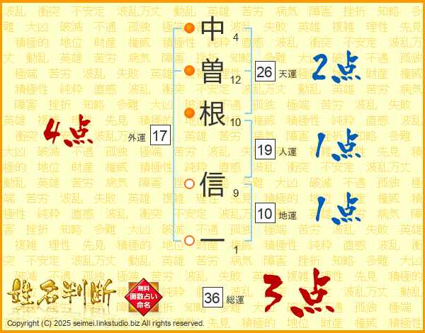 中曽根信一さんの総運は36画の3点!