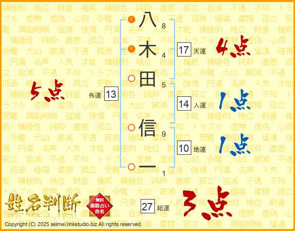 八木田信一さんの天運は17画の4点!
