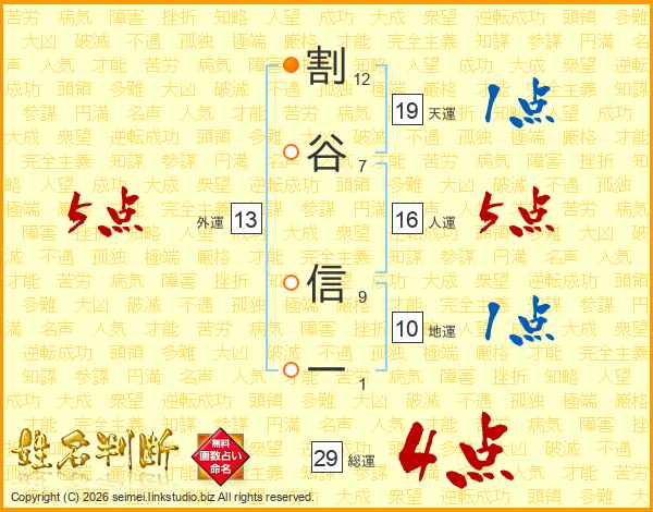 割谷信一さんの総運は29画の4点!