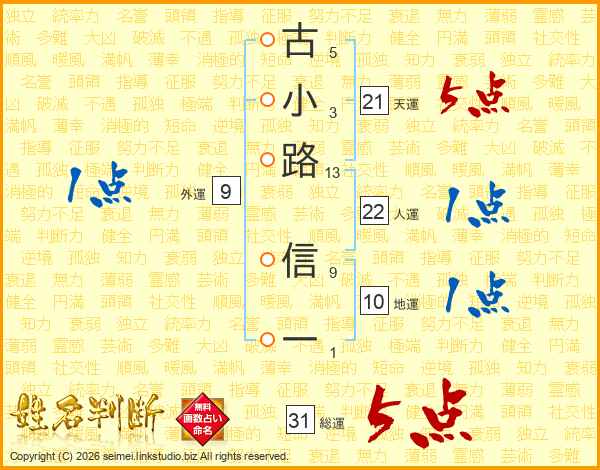 古小路信一さんの総運は31画の5点!
