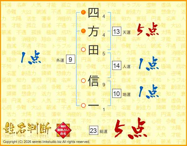 四(4画)方(4画)田(5画) 信(9画)一(1画)