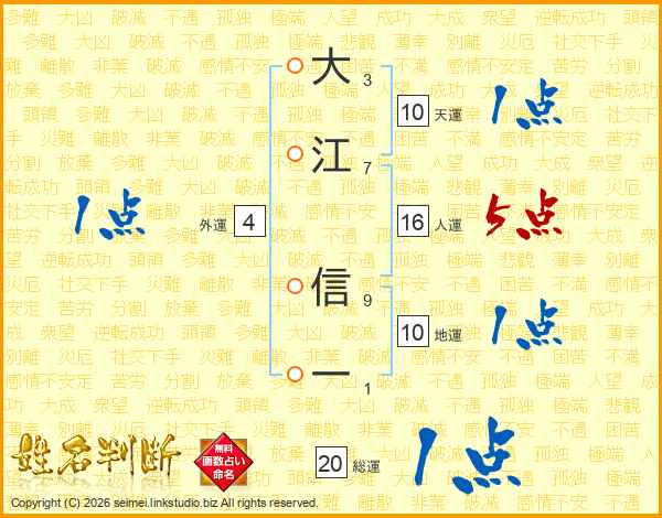 大江信一さんの人運は16画の5点!