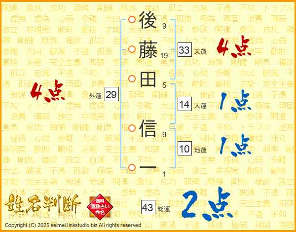 後(9画)藤(19画)田(5画) 信(9画)一(1画)