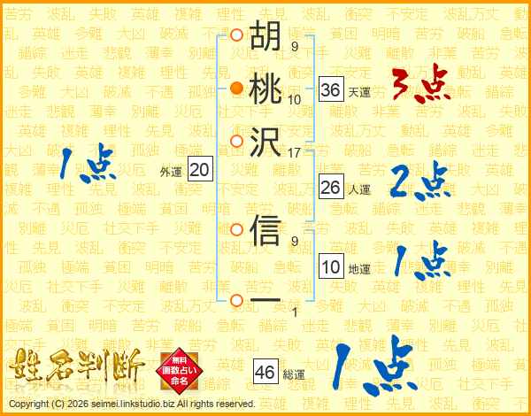 胡桃沢信一さんの総運は46画の1点!