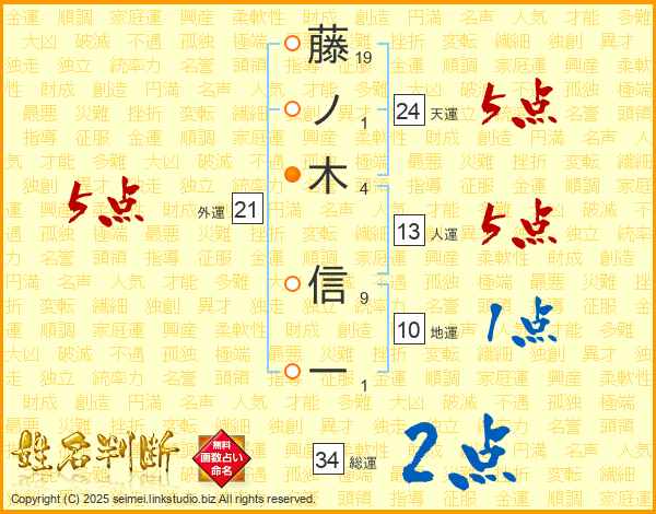 藤ノ木信一さんの天運は24画の5点!