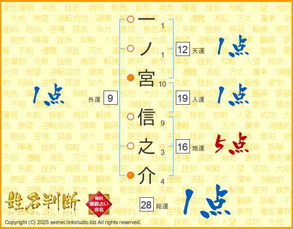 一ノ宮信之介さんの総運は28画の1点!