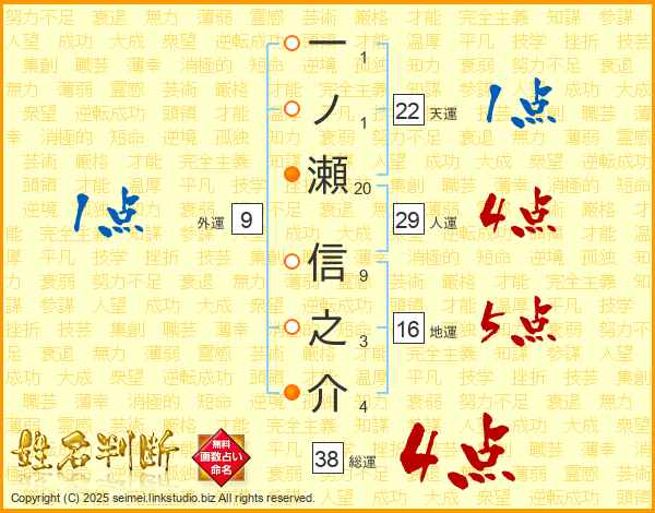 一(1画)ノ(1画)瀬(20画) 信(9画)之(3画)介(4画)