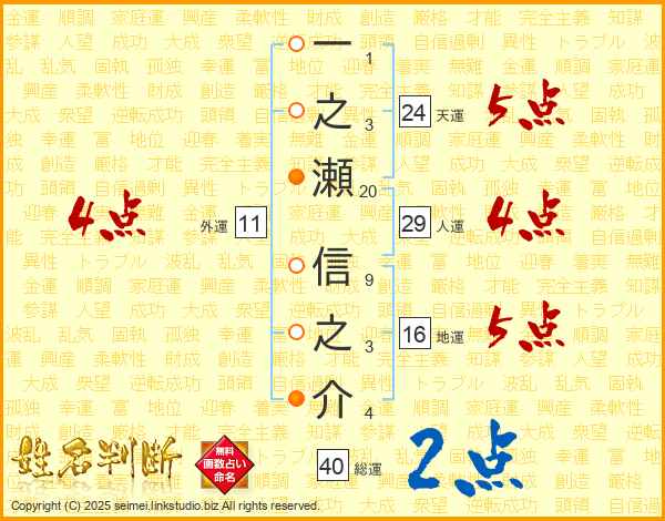 一之瀬信之介さんの総運は40画の2点!