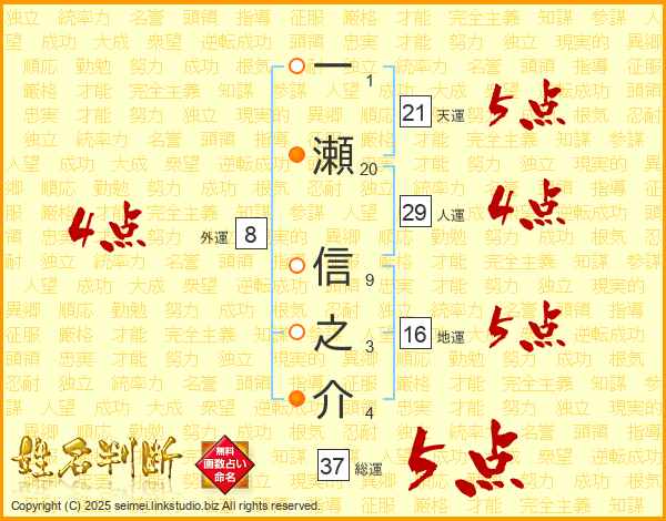 一(1画)瀬(20画) 信(9画)之(3画)介(4画)