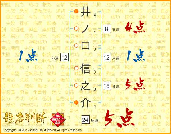井(4画)ノ(1画)口(3画) 信(9画)之(3画)介(4画)